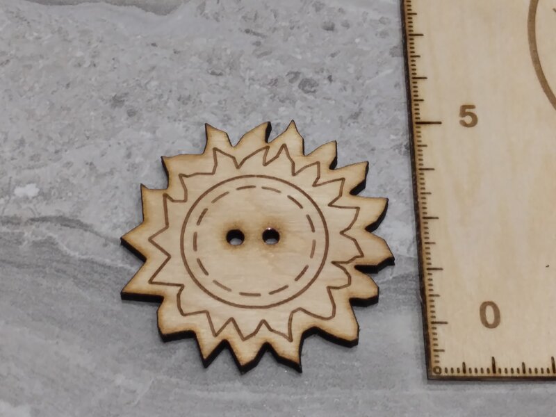 Bottone sole con raggi taglio laser di diametro di circa 50 mm