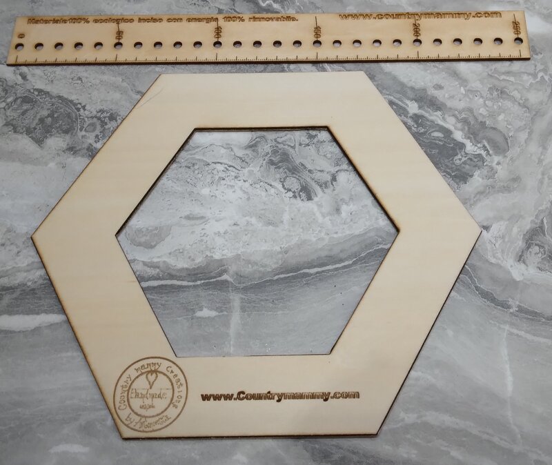 Set con Dima per esagoni da 60 e 100 mm di lato e riga graduata da 250 mm.
